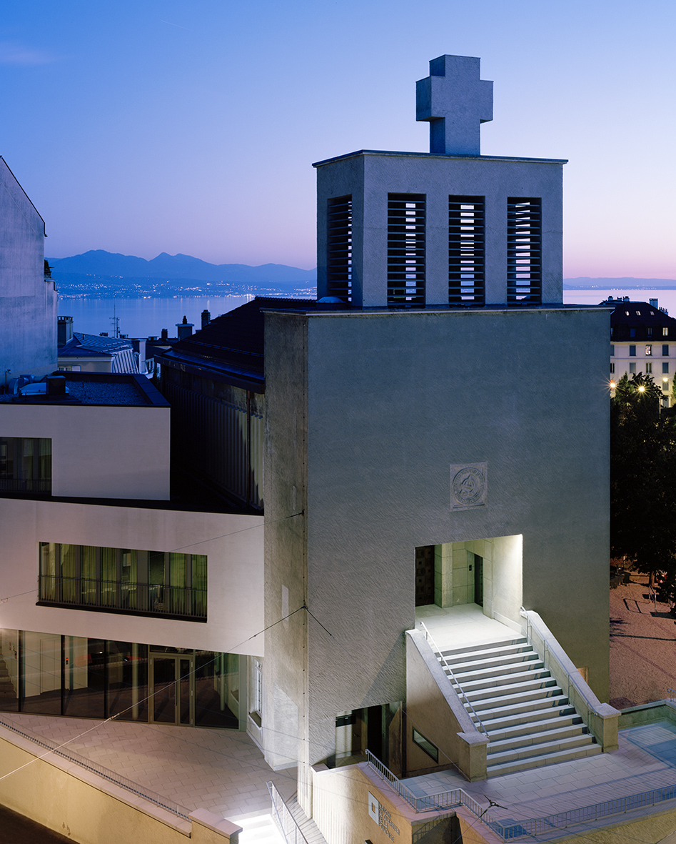 La particularité de ce projet réside en la mutation de son affectation. Le lieu de culte devient maison de quartier. L’architecture du Temple St-Luc, inauguré en 1940, classé en note 2 au recensement architectural, est empreinte de modernité, austère, voire brutale. Notre travail a consisté à révéler les qualités patrimoniales permanentes du bâti et à y insérer un usage renouvelé.